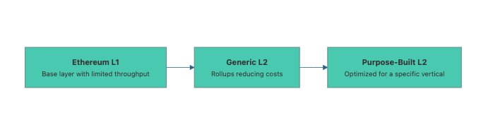 However, as L2 adoption grew, a new question emerged: Could we do even better by tailoring L2s to specific purposes? The first wave of L2s were like general highways for any and all dApps. Now, we're witnessing the rise of purpose-built L2s – specialized "express lanes" optimized for particular use cases. These offer a fresh approach to scaling: don't just make Ethereum transactions cheaper and faster – make entire dedicated ecosystems for distinct verticals.